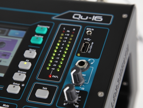 忘掉声卡驱动和软件设置,Qu-16 有着内置多轨 USB录音器,可提供18个通道的48kHz 24位录音和回放到USB硬盘,或从USB 硬盘直接播放。对表演进行立体声和多轨录音前所未有的简单。多轨音频可播放至16个单声道通道外加ST1。硬盘中的立体声文件可以播放到ST3。