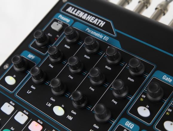 所有输入带有微调、极性、高通滤波器、门限、插入、4段参量均衡、压缩器和延时