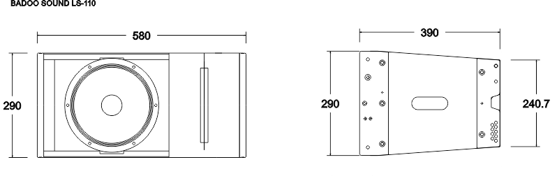 LS-110 uses a 10inch woofer speakers(75mm voice coil), and a 3inch neodynium tweeter ( 1.4inch exit) with big power. Horn loaded construction offers high sensitivity(112dB/1W/1M) and creats a low warp wavefront. It uses improved horn to control well the vertical coverage exactly at 8 degree, so to make seamless joining of sound.