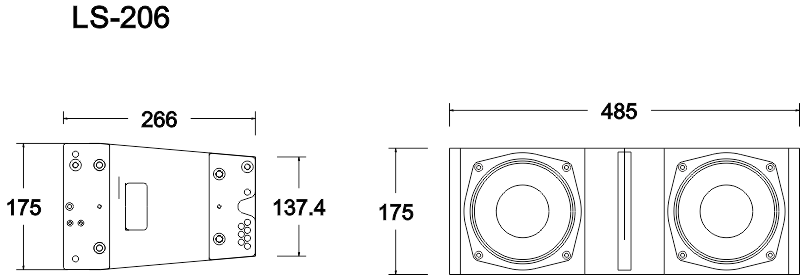LS-206 uses 2 x 6.5 woofer speakers, and a 1.75inch neodynium tweeter ( 1inch exit) with high sensitivity and high SPL. It uses accurate horn to control well the coverage of sound, to transfer spheroidal wave to plane wave, so to reduce abviously interferometer effect of High-Freq, to get much more clear sound in long distance.